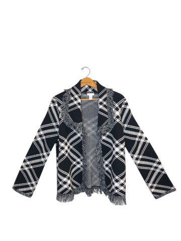 Women's Apparel Cardigan Chico's Medium Black Plaid Long Sleeve