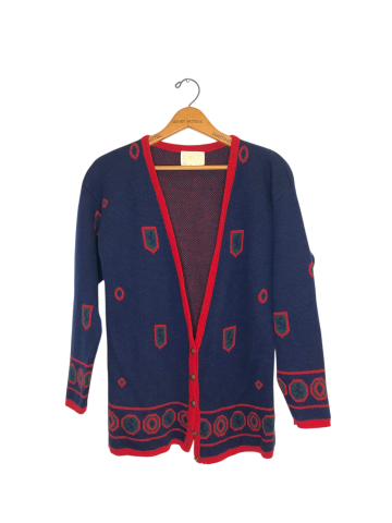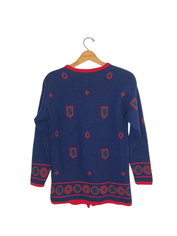 Women's Apparel Cardigan Pendleton S-M Navy Print Wool Long Sleeve